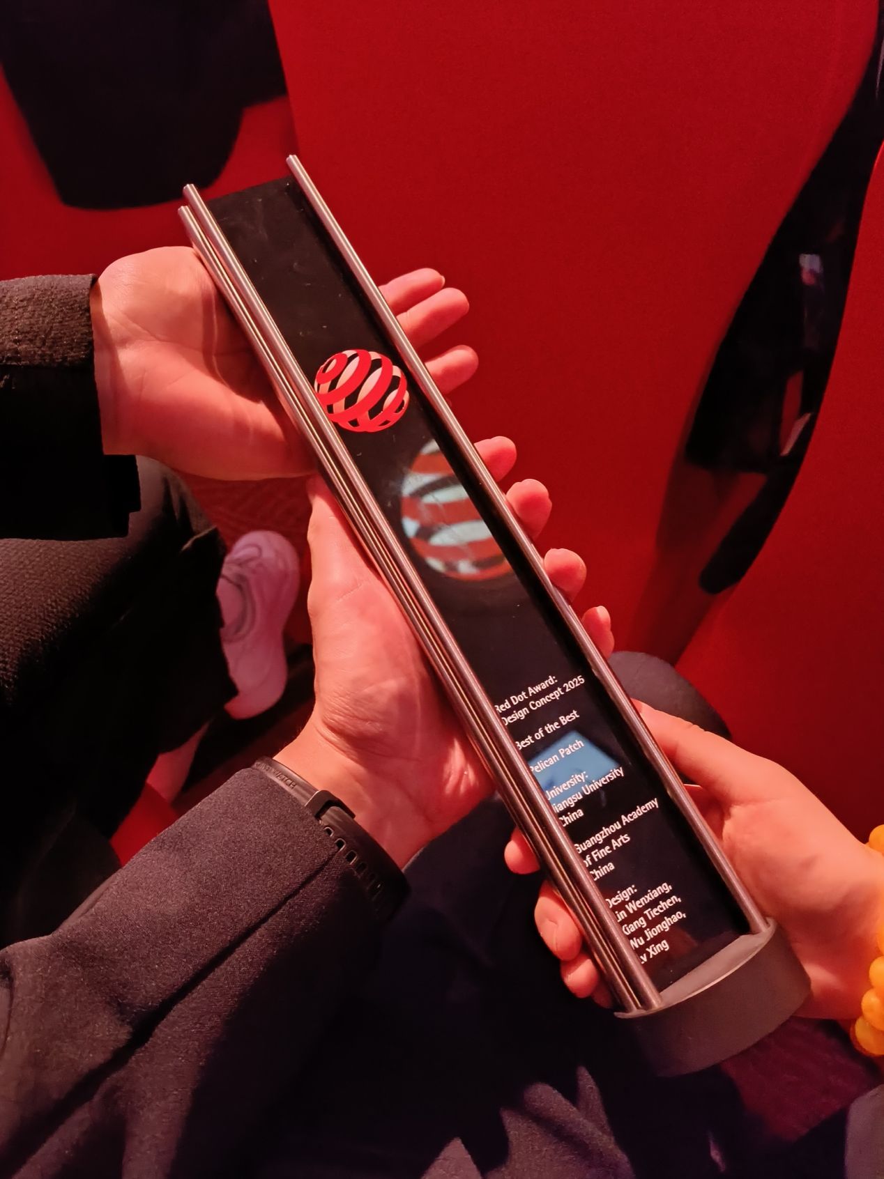 The 2025 Red Dot Awards ceremony recently kicked off in Singapore. A collaborative design project titled "Pelican Patch" by Lin Wenxiang, Xiang Tiechen, and Lü Xing (all master's students from our institute) and Wu Jinghao from Dongguan University of Technology stood out among global competition entries, securing the prestigious Red Dot Award: Design Concept — Best of the Best. As the highest honor in the Red Dot Awards category, this achievement marks our university's historic breakthrough in this international design competition. The team's maiden victory in the top-tier award represents a milestone in advancing our design education and cultivating innovative talent.