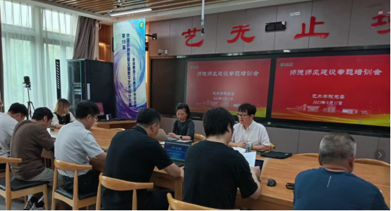 为强化教师师德师风建设,提升教育质量,艺术学院于2025年9月17日成功举办了主题为《提升师德师风:艺术学院教师的责任与实践》书记讲堂,本次讲座由学院党委书记赵明主讲,全体院领导、院党委委员、支部书记、教师代表参加此次培训。