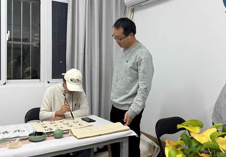 活动当天,书法协会师生与书院学子齐聚。大家结合校训内涵引导学子融爱校情于笔墨;同学们或临摹校训、或原创“笃行致远”等内容。作品陈列展示在书院白墙上,成为独特文化风景。