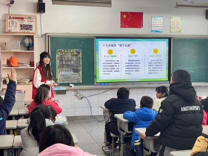 12月25日,全国大学生志愿宣讲团——“艺心护航”管道安全宣传志愿服务团队为江大附校四年级的同学们带来“我是管道建设工程师”沉浸式公益科普课,团队通过趣味互动与动手实践,带领小学生解锁地下管道的“工程密码”。